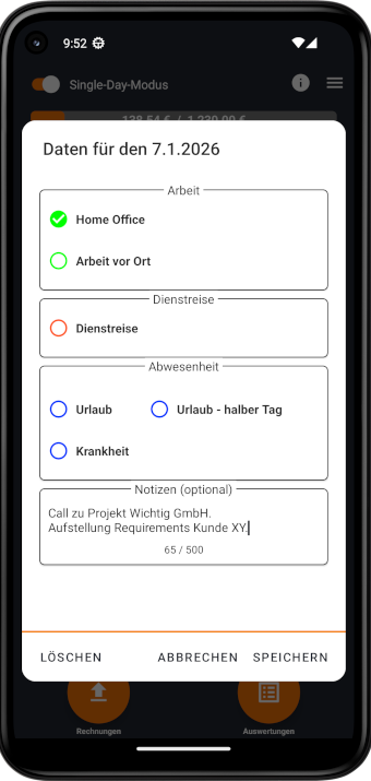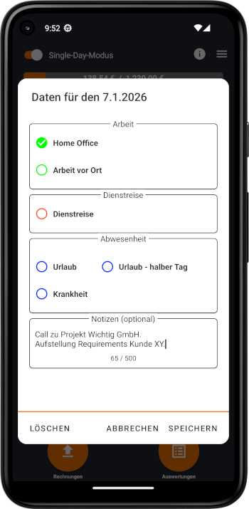 Für jeden Arbeitstag kannst du dir auch Notizen anlegen.